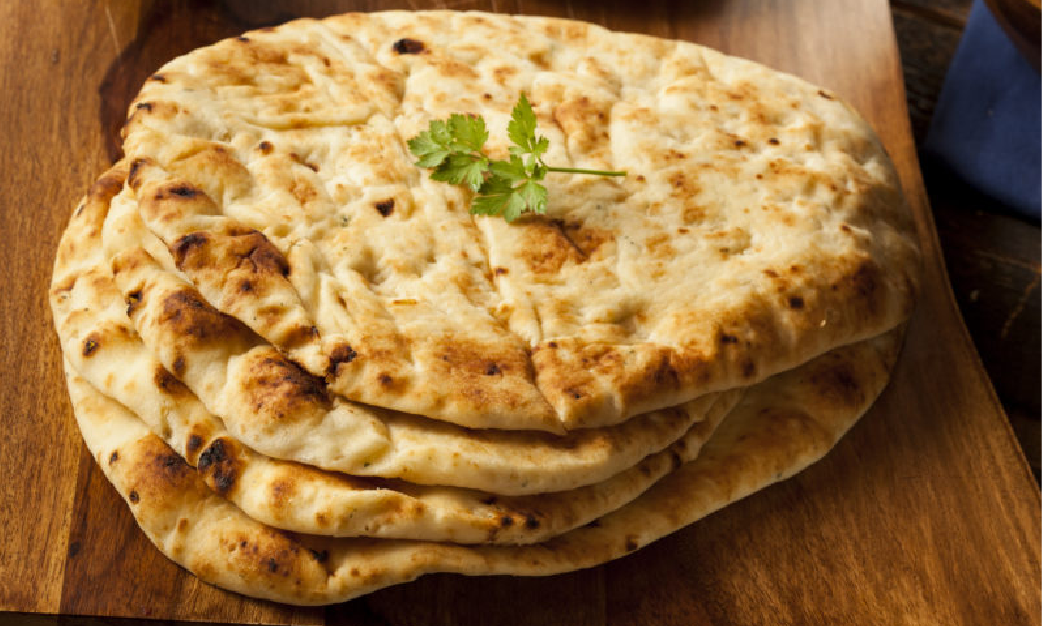 Naan Plain is a classic unleavened flatbread, beloved for its simplicity and versatility in Indian cuisine. Crafted from a blend of flour, water, salt, and sometimes yogurt, this traditional bread boasts a soft, pillowy texture with a slight chewiness, perfect for soaking up curries, dips, or enjoying on its own. Its distinctive charred spots, achieved through traditional baking methods like tandoor ovens, impart a smoky flavor that enhances its overall appeal. Whether paired with savory dishes or used as a base for wraps or sandwiches, Naan Plain offers a delightful balance of taste and texture, making it a staple on tables worldwide.