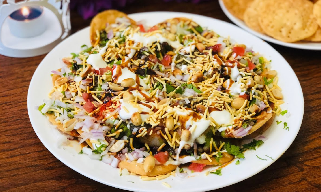Papri Chat, a quintessential Indian street food, is a delightful blend of crispy fried dough wafers (papri) and an assortment of flavorful toppings. This popular snack combines the crunch of the papris with boiled chickpeas, diced potatoes, and a generous drizzle of yogurt and tamarind chutney, creating a symphony of textures and tastes. The dish is often garnished with sev (thin, crunchy noodles made from gram flour) and a sprinkle of fresh coriander, adding a burst of color and extra crunch. Each bite offers a harmonious balance of sweet, tangy, and spicy flavors, making Papri Chat a beloved treat for anyone craving an authentic taste of Indian cuisine.